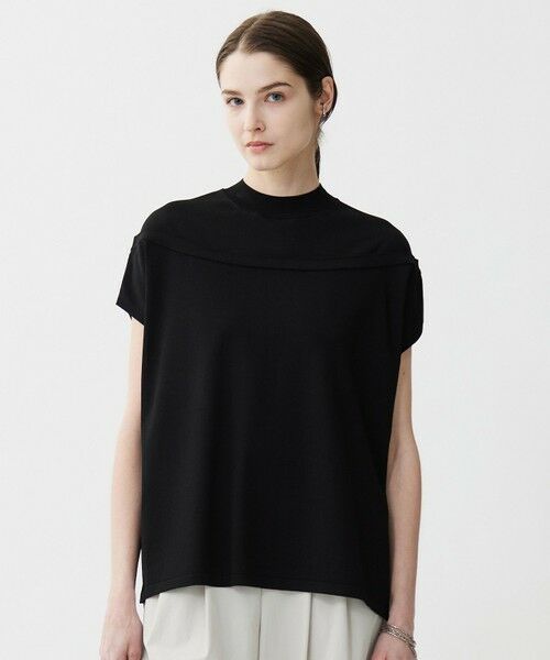 ■デザインレイヤード見えが新鮮なデザインプルオーバー。ドロップした抜け感のあるショルダーラインから袖にかけて一続きにすることで、ゆるやかで優しい印象に。気になる二の腕もカバーできるよう、腕回りのシルエットとカッティングにもこだわりました。モックネックがモードで上品見えし、お顔回りのすっきり見えも叶えてくれます。一枚でサマ見えすること間違いなしのICBらしさが光るニットTEEです。