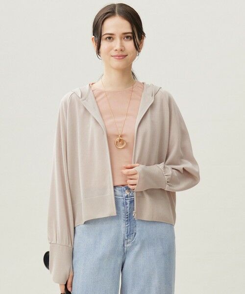 フェミニンなデザインのジップアップパーカー■デザインゆったりとしたドルマンスリーブがフェミニンなジップアップパーカーです。袖口にはサムホールが付いており、アームカバーとしてもお使いいただけます。デザイン性と機能性が両立した万能なアイテムです。ボクシーなシルエットでコンパクトな丈感なので、スカートやワイドパンツ、ワンピースなど様々なボトムスとコーディネートしていただけます。■素材再生繊維セルロースから作られた、シャリみとドライタッチな風合いが特徴の素材です。さらりとしており肌離れが良く、接触冷感、UVケアといった機能性もある夏にもぴったりの素材です。■同素材アイテムカーディガン(KKWRGA0035)