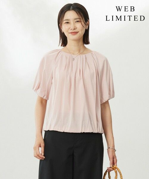 ゆるやかな丸みのあるシルエットが新鮮な印象の、着回し自在なカットソー■デザイン袖口と裾の内側に平ゴムを入れ込み、程よい丸みのあるシルエットに仕上げたカットソー。ふんわりとしたシルエットながら、着丈はすっきりとと仕上げたので、フレアースカートやワイドパンツなどのボリュームボトムとも好相性です。胸元にはタックを施し、着こなしにアクセントをプラス。オンにもオフにも活躍する、着映え力のある1着です。■素材表に綿糸、裏にポリエステル糸を使ってプレーティング編みに仕上げた、カットソーライクなハイゲージジャージー素材です。接触冷感性もあり、夏に心地よく着られる快適さも兼ね備えた素材です。※商品画像はサンプルを使用しているため、色味やサイズ等の仕様に変更がある場合がございますので、予めご了承ください。洗濯表示【本体のみ】40℃まで弱洗濯可 塩素系漂白不可 タンブル乾燥不可 日陰つり干し乾燥 アイロンは160℃まで ドライクリーニング(石油系)可 弱いウェットクリーニング可