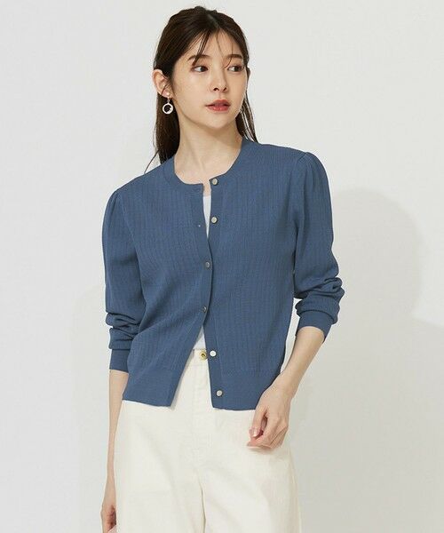 ・同素材のフレンチプルオーバーとセットで着用可能・スカート合わせでフェミニンな印象に仕上がる透かし柄の涼しげなニット