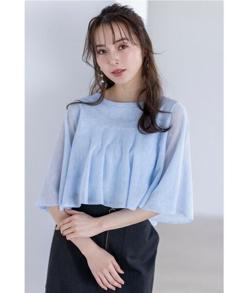 ・繊細な素材感を活かした軽くフェアリーなニット・ほどよいシアーな透け感でフェミニンな印象に・フリルをティアード状にしたデザインで女性らしさ満点・お腹周りや二の腕もカバーできるデザイン