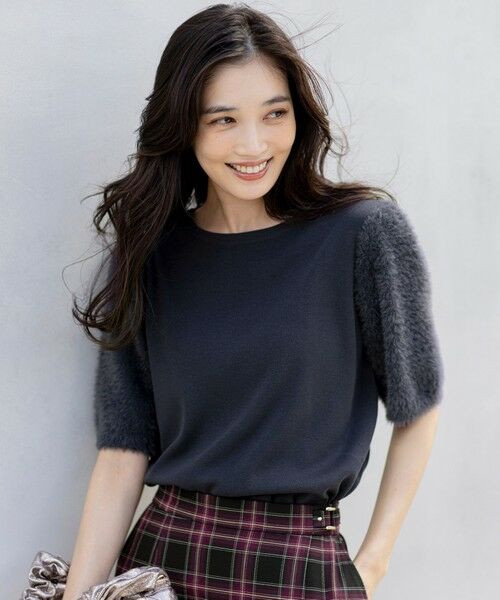 上品な光沢レーヨン×シャギー袖で大人可愛いニットプルオーバー