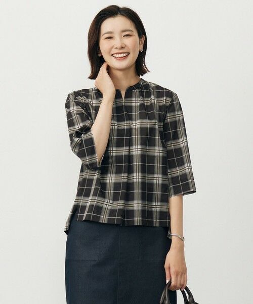 キーネックの首元で涼しげな印象に!表情豊かなチェック柄が魅力のブラウス