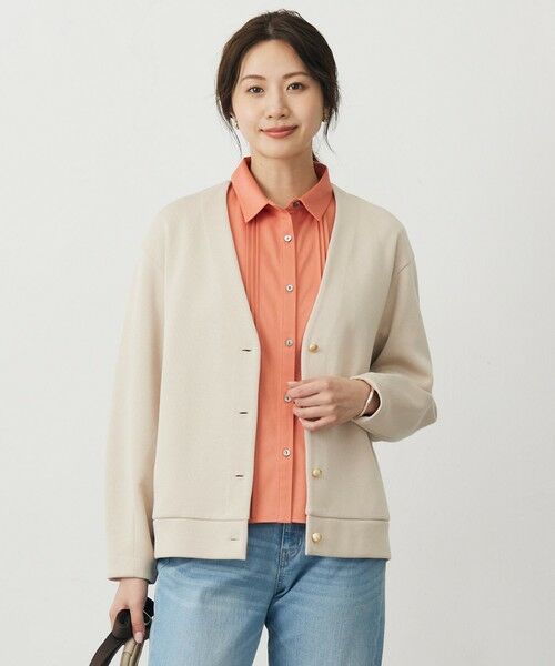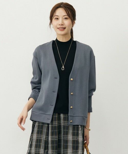 ■デザインきれいめすぎず、カジュアルすぎない絶妙なバランスが魅力のVネックカーディガン。ほどよい肉感で、季節を問わず長く活躍してくれるアイテムです。さりげなく輝くメタル釦が、高見えするポイントに。やや長めの着丈で、インナーを選ばず羽織れる汎用性の高さも魅力です。大人のワードローブに頼もしい、万能カーディガンです。カラーは、しまった印象のブラック(#005)、上品で肌なじみのいいベージュ(#033)、コーディネートの差し色になるダルブルー(#074)の3色展開です。
