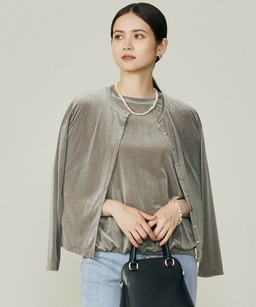 程よい透け感がポイントのベロア素材カーディガン■デザインややコンパクトなシルエットのベロア素材のカーディガンです。クラシカルなカーディガンは素材に表情があり、シンプルながらスタイリングのアクセントになるアイテムです。■素材透け感のあるベロア素材です。絶妙な透け感と光沢感でニュアンシーな雰囲気を楽しめます。レイヤードでのアクセント使いから1枚着トップスなど、様々なアイテムで活躍するトレンド素材です。■同素材アイテムカットソー(KKWRGW0333)※画像はサンプルを使用している為、実際にお届けする商品と仕様、加工、サイズが若干異なる場合がございます。予めご了承ください。※撮影環境の都合上、実際の商品と色味が異なって見える場合がございます。洗濯表示【本体のみ】40℃まで弱洗濯可 塩素系漂白不可 タンブル乾燥不可 日陰つり干し乾燥 アイロンは120℃まで ドライクリーニング不可 弱いウェットクリーニング可