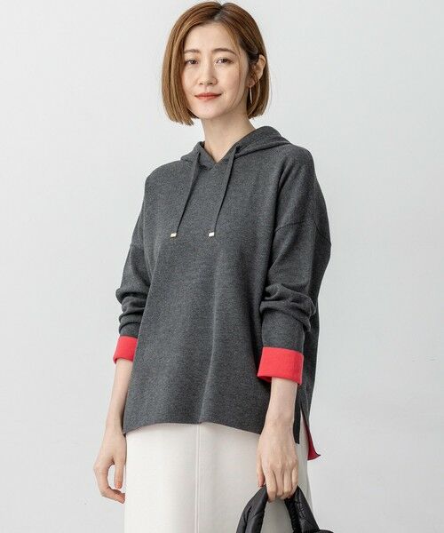 袖口と裾からちらりと覗く配色が、さりげないおしゃれ心をくすぐるダブルフェイス編みのフード付きプルオーバー。オフボディのリラックス感あるシルエットながら、小ぶりなフードが程よく顔回りに立ち上がり、首元をすっきりと見せてくれます。高密度で美しい表面感は、カジュアルなアイテムながらも大人の品格を演出。パンツスタイルでクールに、スカートと合わせてフェミニンにと、幅広いコーディネートをお楽しみいただけます。裏面には肌触りの良い綿糸を使用しているため、暑さの残る時季から肌寒くなる季節まで、長く快適にご着用いただけます。カラー展開は、イエローが目を引くアイボリー(#002)、コーラルがアクセントをプラスするグレー(#004)、ティールグリーンを配した抜け感のあるブルー(#070)の3色展開です。