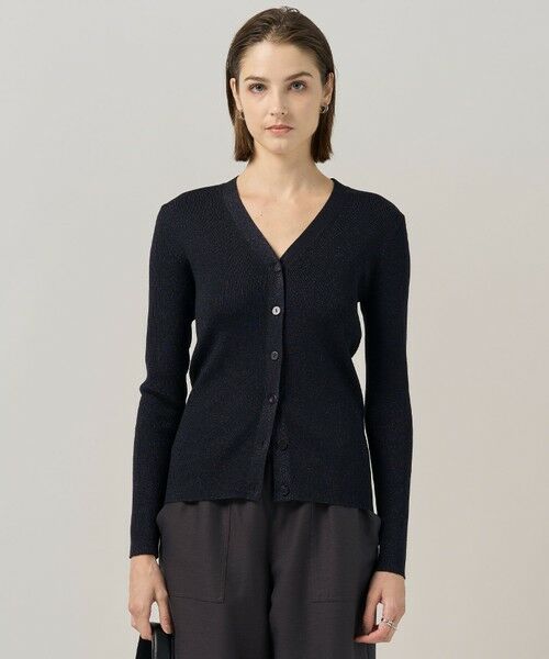 ラメ混素材で上品に華やぐ、一枚から羽織りまで万能なVネックカーディガン