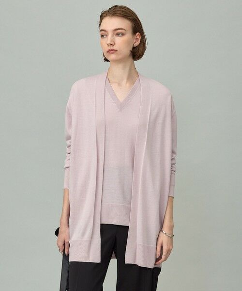 ■デザインヒップまで隠れるレングスで上品見えする着流しのロングカーディガンです。スタイリッシュにきれいに着ていただける様、縦長のすっきりシルエットに仕上げました。肌寒い時期の羽織としてはもちろん、コートINにも着やすいので長いシーズン活躍します。通勤や旅行などのお出かけにもおすすめです。Iラインシルエットですっきり見えし、体型カバーも可能な上、着回し力も抜群な優秀カーディガンです。同シリーズのVネックニットとアンサンブルで上品な着こなしも楽しめます。