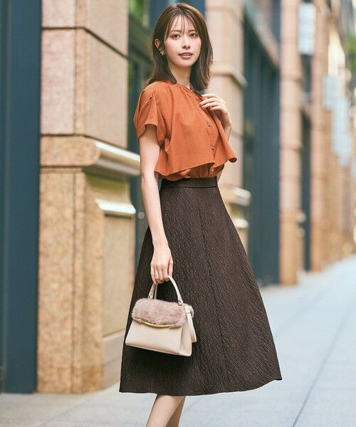 ・細かい凹凸感のある膨れジャカード素材を贅沢に使用したフレアスカート・ジャカード素材は、よく見ると小花柄になっており女性らしい印象・カラーはフォーマルなシーンでも活躍するブラックと、落ち着いた印象のブラウンをご用意