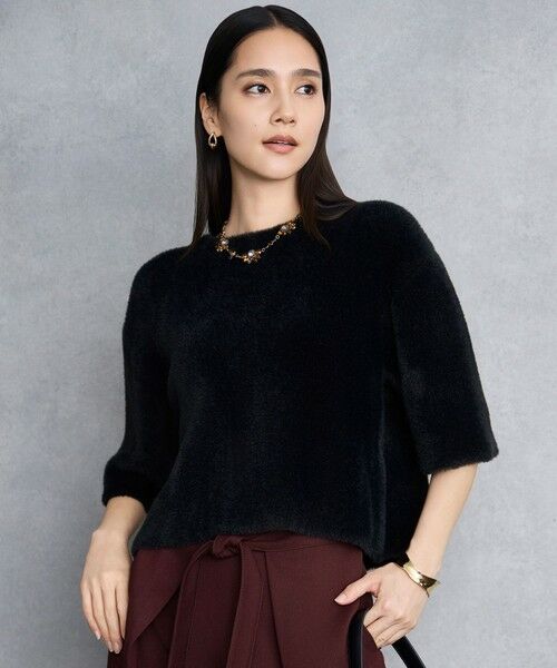 ふわふわとした毛足のある素材が印象的なニット■デザインTシャツライクで着て頂けるコンパクトな毛足が印象的で華やかなニットです。身頃のサイジング、袖の長さなど程よく肌離れしつつオーバーサイズながらカジュアルに見えないシルエットに仕上げております。フランスにあるキャラメル屋Maison Pelerinとのコラボレーションアイテムです。【Maison Pelerin】フランスの世界遺産・モンサンミッシェルのふもとを拠点にするMaison Pelerin。クラフトマンシップを大切にし、伝統的な製法を守りながら作られるアイテムは、塩バターキャラメルをはじめ、ナッツやチョコレートなどバリエーション豊かです。工房が併設せれた店舗は、連日多くの人で賑わっています。■素材ミンク風の糸を膨らみとストレッチ性のある弾力糸で接結編みにすることで、華やかな毛足のある素材に見えて程よく肌離れするタッチに仕上げています。非常に柔らかく心地よい手触りで、毛が密生してふわふわしています。