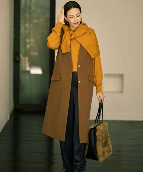 様々なコーディネートに合わせやすいバランス感のジレ■デザイン上品な素材を使用したすっきりとしたボクシーなシルエットのジレです。シャープなVネックで着回ししやすいバランス感になっています。まだ本格的な寒さにならない時期にも冬の気分を盛り上げるライトなコート地のトッピングアウターです。■素材SUPER100原料のウールを使用したショートビーバー素材です。起毛はクラシックなアザミ起毛機を使用し、時間をかけてセット工程を通すことで生み出される、ツヤのある毛羽立ちが少ない美しい毛並みが特徴です。見た目よりも軽くしなやかで上品さを感じられる素材です。■同素材アイテムロングコート(SCWRGW0522)