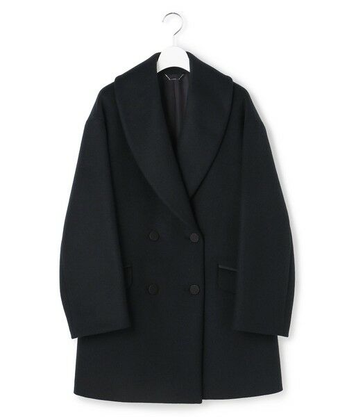 ■デザインエレガントな印象のショールカラーのミドル丈コートです。光沢素材のくるみボタンや脇に入れた配色パイピングのデザインが魅力。襟の裏側には配色のカラークロスをあしらえ、見えない部分にも遊び心を感じさせるデザインにしています。また、裏面のデザインも配色のパイピングや配色ボタン使い、胸ポケット部分は台場仕立てにし、高級感のある仕様にこだわっています。厚手のニットの上にも羽織やすいサイズ感で様々なスタイリングを楽しめます。