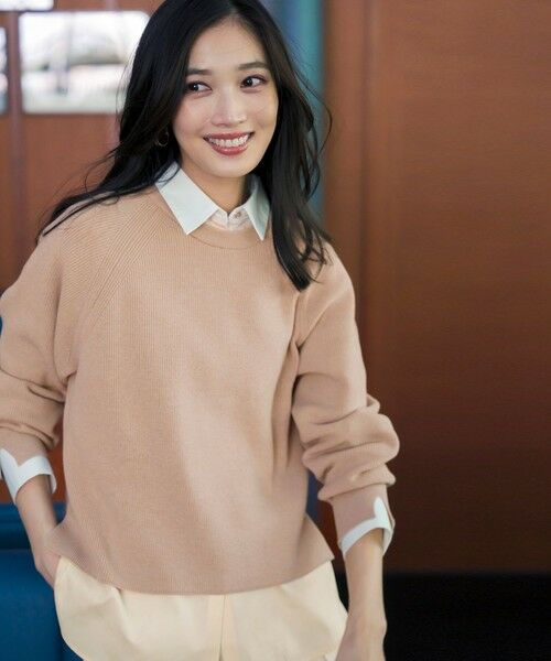 【ニット】・スッキリとしつつも程よくゆとりのあるシルエット・前身頃の編み柄がポイントに・ふんわりと広がりのある袖
