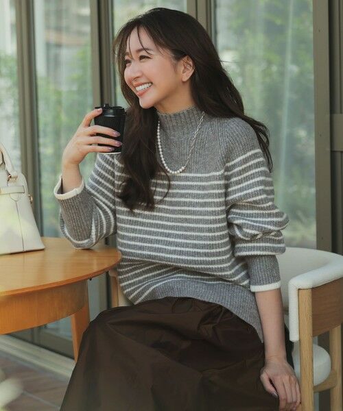 #ANYSIS #anySiS #エニシス #エニィシス #エニスィス #レディース #ニット #ハイネック #ボーダー #カジュアル #きれいめ #上品 #お出かけ #洗える #ウォッシャブル