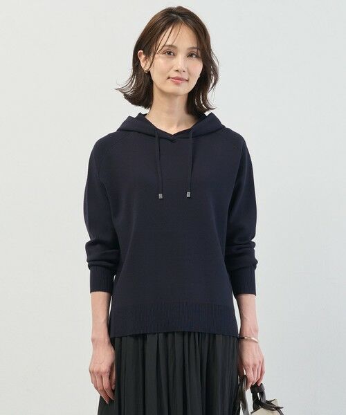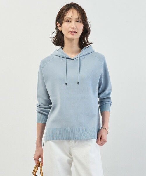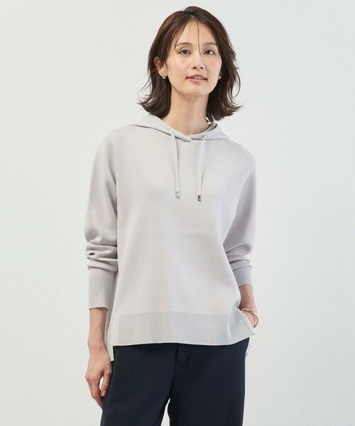 柔らかさの中に適度なハリをプラスしたニットパーカー。腰まわりを自然にカバーしてくれる長めの着丈で、気になる部分をカバーし、細身パンツともバランス良く決まります。前振りラインにスリットを入れたデザインが、程良い抜け感をプラス。ワイドパンツやフレアスカートと合わせても重くならず、上品な大人カジュアルスタイルを叶えてくれるアイテムです。カラーは、落ち着きのあるライトグレー(#003)、女性らしさを引き立てるピンク(#012)、スタイリングのポイントになるサックス(#073)、上品なリラックス感を与えるネイビー(#075)、4色展開です。