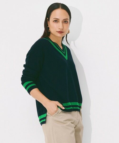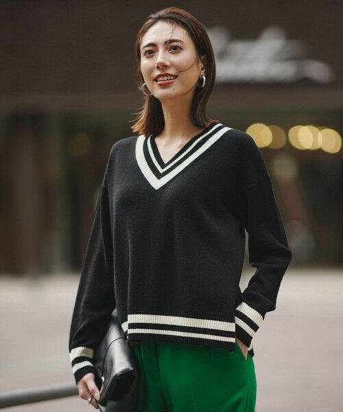 配色ラインで上品スポーティーな着こなしが叶う大人のチルデンニット