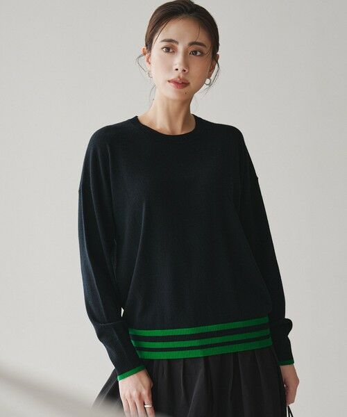 着心地も着映えも叶う、軽くて柔らかい素材感の配色ニットプルオーバー
