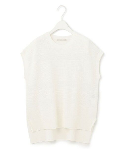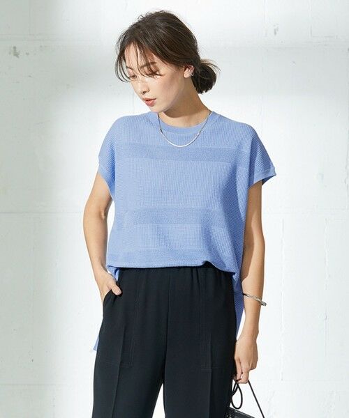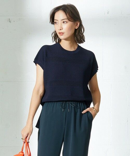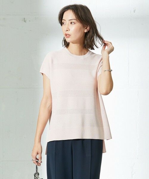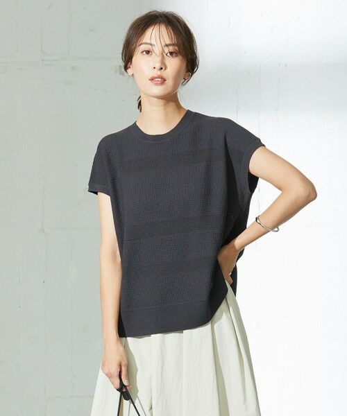 涼やかな着心地ながら、ランダムな編地柄でサマ見えするフレンチスリーブニット