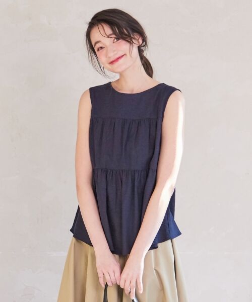 Feminin 2mile Wearany SiSにリラックス感と更なる着心地の良さをプラスした姉妹ブランド "" any SiS L'aube ""1枚で着映えするティアードデザインのリネンブラウス