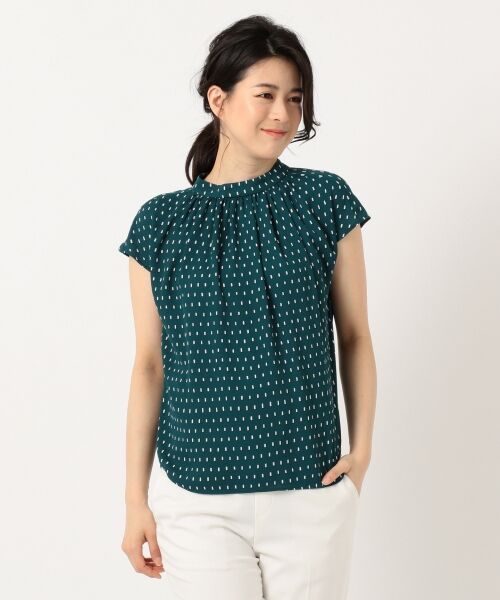 さらっとした風合いが心地いいドットブラウス。ハイネックと滑らかに入ったギャザーが入ることで、オフィスではきちんと見え、普段使いでは可憐な女性らしさを演出。スタイリングに合わせて様々な表情が楽しめます。また、ドット柄はスクエア型なので甘くなりすぎないのが嬉しいポイントです。どんなシーンでも活躍するブラウスは、今年はトレンドの柄で遊び心を加えて好印象を手に入れて。カラー展開は、クールさが魅力の、Vネック型で大人気「ブラック×ホワイトドット」、爽やかな「グリーン系×ドット」の2色です。着ているだけでHAPPYになれる「鮮やかカラー×ドット」は、ICBらしいクールさも合わせて楽しめるカラー。