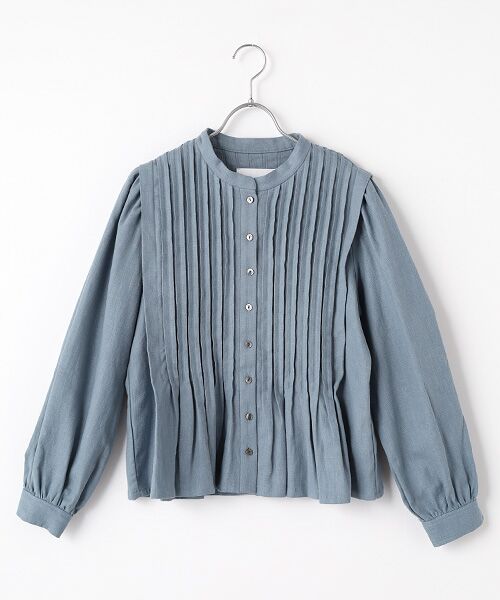 前後見頃にたっぷりとタックを施したブラウス。タックギャザーのふんわりとしたヘムラインがフリルの様でさりげなくかわいい一枚です。●FABRIC適度な厚みで温かみがある綿麻のツイル素材。フェード感のある色味がカジュアルな印象です。