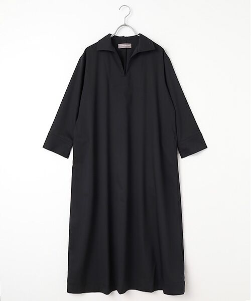 大人な落ち着いたカラー展開のオープンカラーワンピース。ゆったりとリラクシーな雰囲気を纏いながらも、落ち感のある素材でスッキリとしたシルエットに仕上げた商品。同素材のギャザーペプラムジレとのレイヤードスタイルも◎●FABRICサラリとした肌触りの薄手のTRストレッチ素材。シワになりにくく軽さがあり、適度な光沢とハリ感が特徴です。