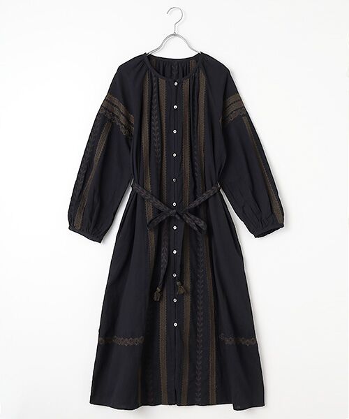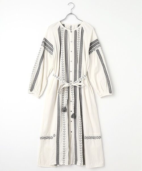 贅沢に施した配色刺しゅうが華やかなロング丈ワンピース。生地に程よい厚みがあるので体系を拾わずキレイにAラインが広がります。袖口はゴムでたっぷりギャザーを寄せたデザインでたくし上げてバルーン袖にして着用しても◎●FABRIC中肉の綿麻に贅沢に配色刺しゅうを施した素材。サラリとした肌触りで清涼感があるのが特徴です。透けが気にならないのもポイントです。