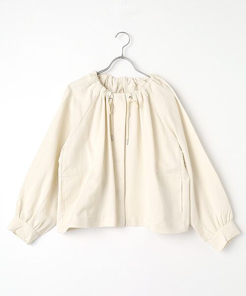 控えめな光沢が大人な印象のショートブルゾン。首元から広がるギャザーによって女性らしいシルエットに仕上げた商品。衿ぐりのコードとファスナー開きがカジュアルな印象で、デイリーに着まわせる一枚です。●FABRICリヨセルコットンのサテン素材。適度な厚みと程よい光沢があり、キレイになり過ぎないヴィンテージ感のある表面感も特徴です。