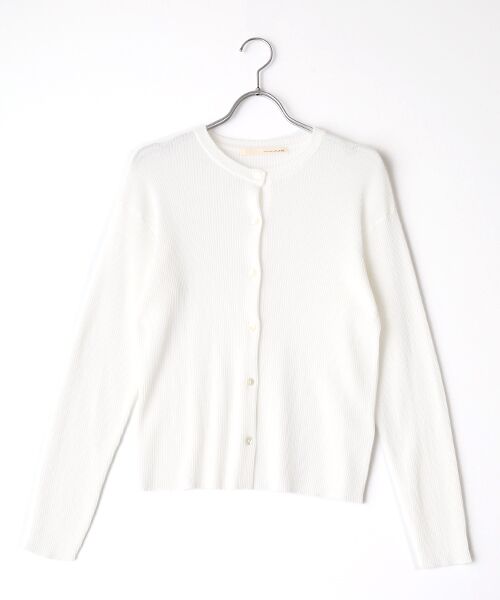 微光沢な繊細な糸を使用して上品なリブ編みに仕上げました。透け過ぎず適度な落ち感のあるクルーネックのコンパクトなカーディガンです。ボタンを全て留めてプルオーバーとしての着こなしも◎程よく綺麗目なので通勤や学校行事、デイリーなシーンにも幅広く使える便利なニットアイテム。※画像の商品はサンプルです。実際の商品と色味、仕様、加工、サイズ、素材等が若干異なる場合がございます。