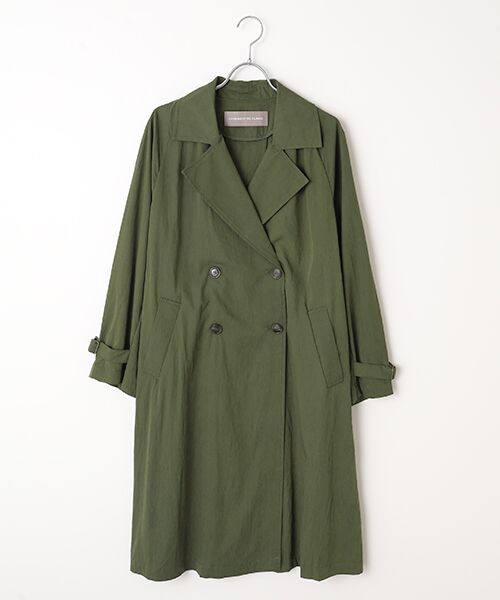 軽くてハリのあるレーヨンナイロン素材を使用した裏無しのライトコート。袖口タブはバックルを付けて絞れるデザイン。カジュアルながらもシルエットがキレイに見える素材なのでバックスタイルもスタイリッシュな仕上がりになっています。ジャケット感覚で軽く羽織って頂けるアイテムです。●FABRIC適度なハリがありカジュアルな印象のレーヨンナイロンのタイプライター。微光沢があり品のある素材感です。※画像の商品はサンプルです。実際の商品と色味、仕様、加工、サイズ、素材等が若干異なる場合がございます。