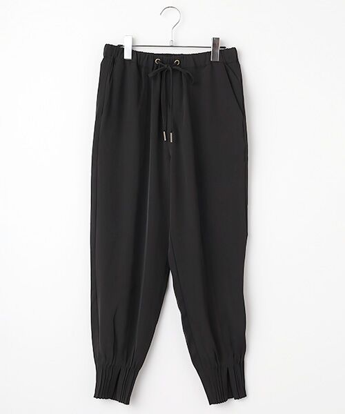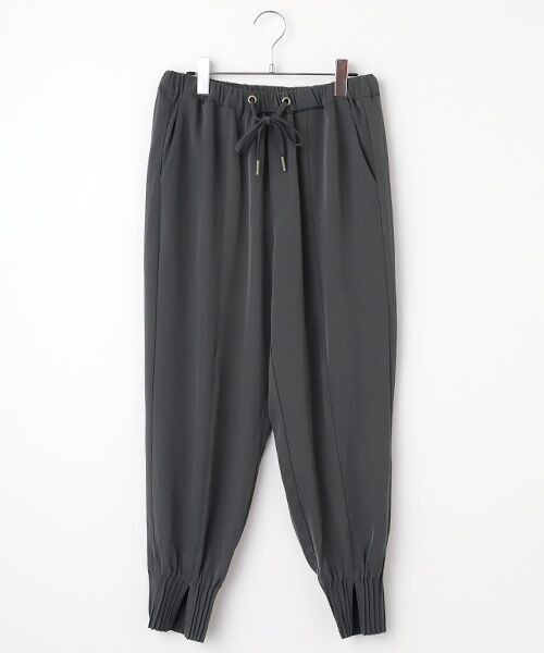 裾にピンタックを施したイージーテーパードパンツ。落ち感のあるしなやかなポリエステルストレッチ素材を使用した大人カジュアルな一枚です。センタープレスの位置にもピンタックを施し脚がキレイに見えるデザインになっています。●FABRICサラリとした表面感のポリエステルストレッチ。軽さと落ち感がありシワにならずお手入れが楽ちんな素材です。※画像の商品はサンプルです。実際の商品と色味、仕様、加工、サイズ、素材等が若干異なる場合がございます。