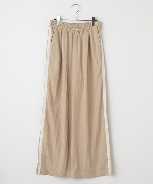 レーヨン×ナイロンのドライタッチでしなやかな素材で作ったトラックパンツ。さりげない配色のライン使いで、気軽にトレンドを取り入れやすいおすすめの1枚です。ゆったりしたシルエットでリラックス感があり、Tシャツ合わせでもこなれた雰囲気に仕上がるのもうれしいポイント◎両サイドにポケットあり。ウエストはフルゴム+共地のリボンでサイズ調整が可能。※画像の商品はサンプルです。実際の商品と色味、仕様、加工、サイズ、素材等が若干異なる場合がございます。