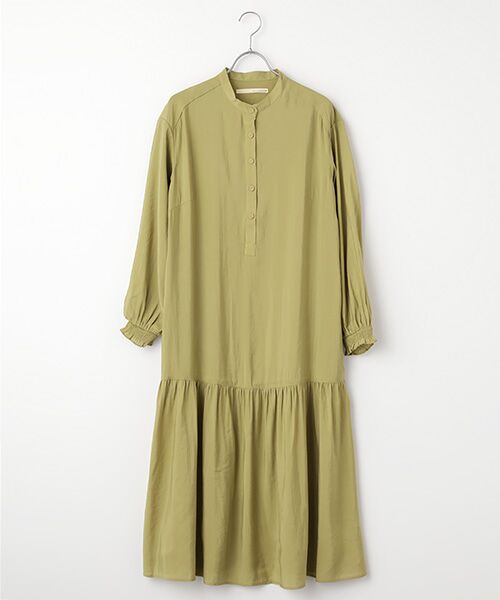 モダール×ポリエステルのややシボ感のある素材で作ったワンピース。程よい落ち感と張り感を兼ね備えていて、シルエットをきれいに見せてくれます。切り替えを入れてギャザーを寄せたカジュアルながらも上品なデザインで、普段使いはもちろんお出かけにもおすすめ。フロントの共地くるみ釦と袖口のシャーリングがポイントです。両サイドにポケット付き。※画像の商品はサンプルです。実際の商品と色味、仕様、加工、サイズ、素材等が若干異なる場合がございます。
