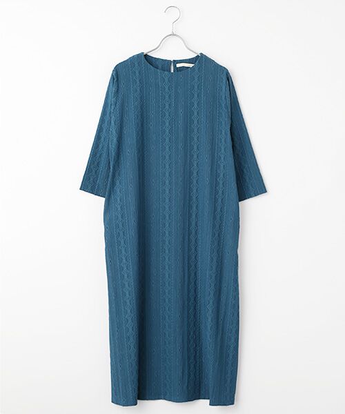 幾何無地柄のジャガードでプレーンなシルエットのロングワンピースを作りました。小さなアイレットが開いているので風が通り涼しくリラックスして着て頂きます。両サイドにポケットが付いています。※画像の商品はサンプルです。実際の商品と色味、仕様、加工、サイズ、素材等が若干異なる場合がございます。