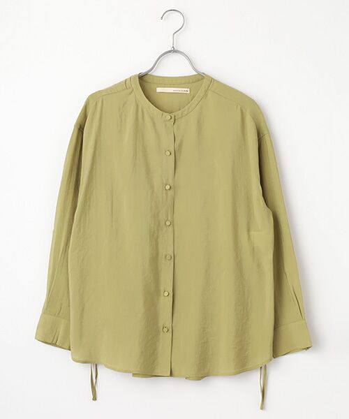 モダール×ポリエステルのややシボ感のある素材で作ったシャツ。程よい落ち感と張り感を兼ね備えていて、シルエットをきれいに見せてくれます。シンプルなデザインのノーカラーシャツをベースにサイドのドロスト仕様でアレンジが可能です。絞るとコクーンシルエットのような立体感が生まれ、ニュアンスのある印象に。フロントの共地くるみボタンもポイントです。※画像の商品はサンプルです。実際の商品と色味、仕様、加工、サイズ、素材等が若干異なる場合がございます。