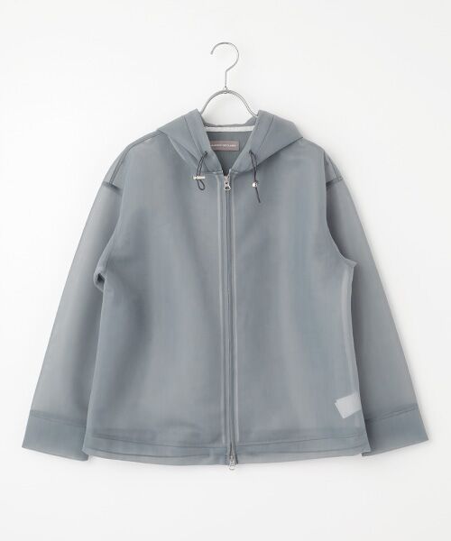 透け感のあるダンボール素材でお作りしたジップアップのアウター。ハリのある素材なのでフードも立体的に仕上がった軽い仕上がりの一枚。ラフに羽織るだけで旬なスタイリングが叶います。