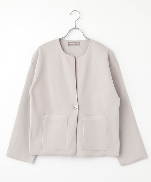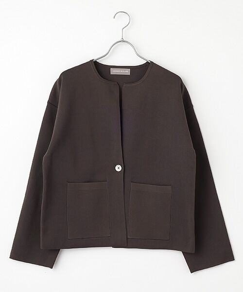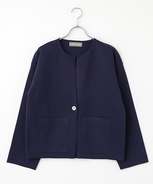 しっかりとした編地で大人っぽくニットジャケットを作りました。フォルム感のあるノーカラーでアウトポケットがアクセントになったシンプルなデザイン。同素材同カラーのセットアップに合わせてスリーピースとしてもお使いいただけます。お仕事や学校の行事に活躍の一枚です。●FABRICドライタッチなポリエステルの糸をハーフミラノでしっかり編立てました。※画像の商品はサンプルです。実際の商品と色味、仕様、加工、サイズ、素材等が若干異なる場合がございます。