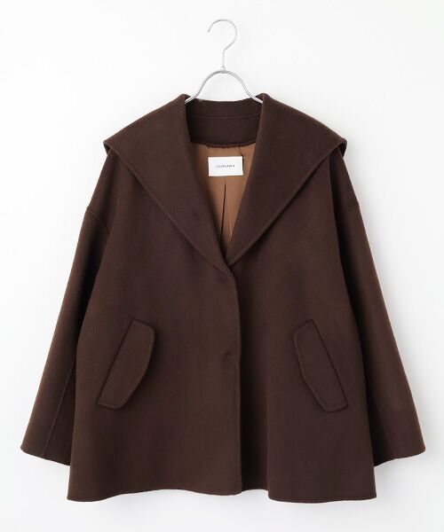 上品な印象のセーラーカラーミドル丈コート。リラックス感のあるテントラインが大人フェミニンな印象の一枚。ダブルフェイスの特別な始末で縫製されており。手作業で仕上げられてる部分もあります。滑りが良いように袖裏だけ付けている軽い仕上がりの商品です。●FABRICウール糸を二重織にした、しなやかな肌触りが魅力の素材。滑らかさとツヤ感のある上質な風合いが特徴です。※画像の商品はサンプルです。実際の商品と色味、仕様、加工、サイズ、素材等が若干異なる場合がございます。