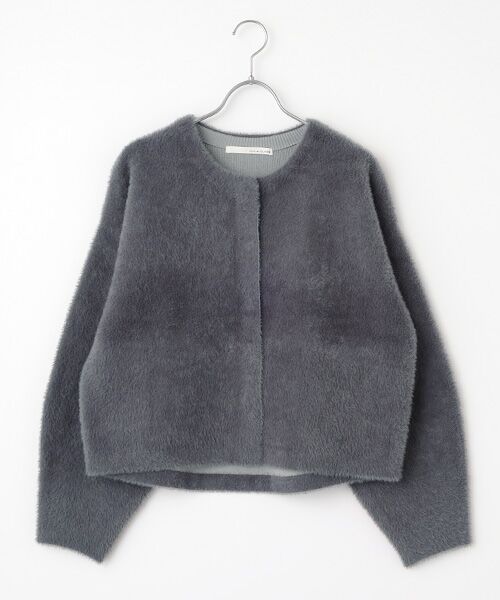 毛足が密なフェザーダブルフェイスのノーカラーニットジャケット。綺麗めな着こなしもデニム等と合わせたカジュアルコーデにもおすすめです。金属の隠しスナップボタンが付いています。※画像の商品はサンプルです。実際の商品と色味、仕様、加工、サイズ、素材等が若干異なる場合がございます。