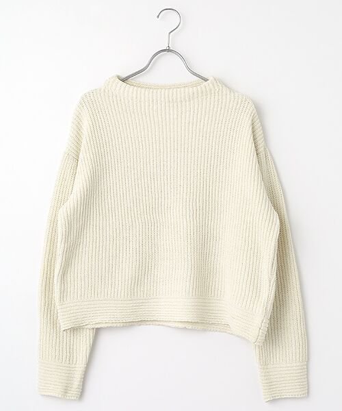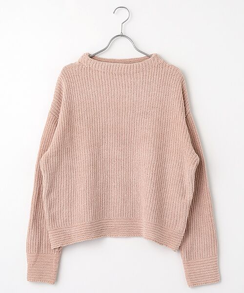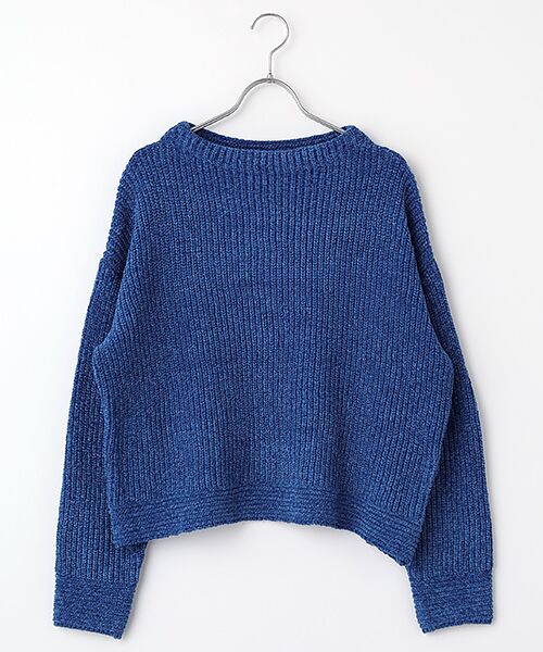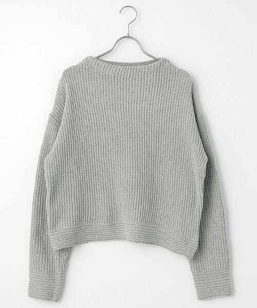 微光沢の滑らかなモール糸を度詰めの片畦に編立ています。シンプルなボトルネックのプルオーバーで袖口と裾口の編み方向を変えたデザインです。毛羽立ちし難く綺麗めなスタイリングにお使いいただけます。※画像の商品はサンプルです。実際の商品と色味、仕様、加工、サイズ、素材等が若干異なる場合がございます。