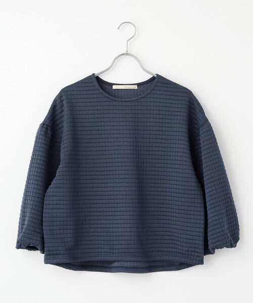 薄手の軽量なキルトの生地を使用しています。袖と裾をゴム使いでバルーンシルエットでややクロプドな着丈デザイン。スタイリングに変化を持たせてくれるデザインカットソーです。※画像の商品はサンプルです。実際の商品と色味、仕様、加工、サイズ、素材等が若干異なる場合がございます。