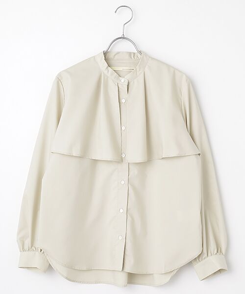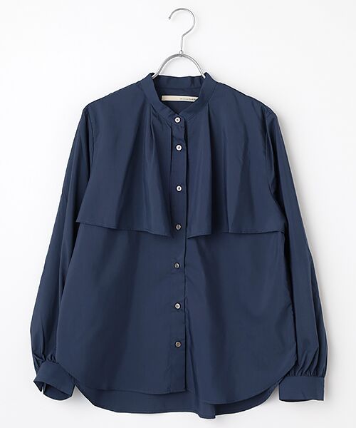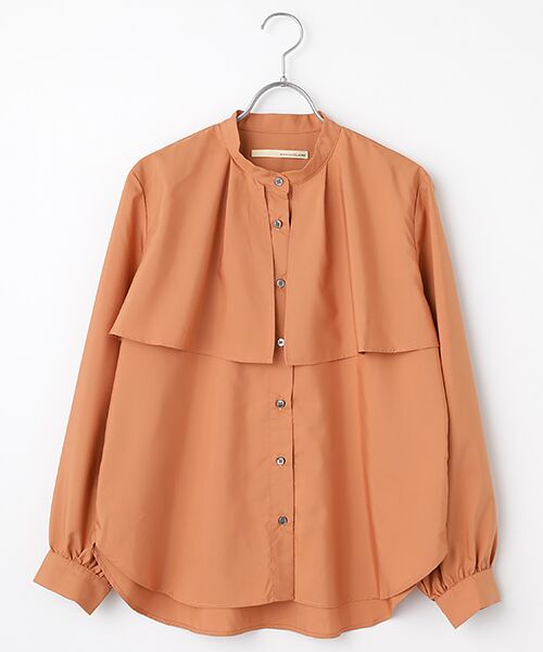 シワになりにくく柔らかなポリエステル×モダールブロードで作ったブラウス。ケープがドッキングしたようなデザインがポイントのトレンド感のある1枚です。きれい目な印象なのでデニムやカーゴパンツでカジュアルダウンしたり、スカート合わせでお出かけスタイルにしたりと着回しの幅の広いアイテム。身幅はゆったりですがセットインスリーブですっきり見えるのもポイント◎※画像の商品はサンプルです。実際の商品と色味、仕様、加工、サイズ、素材等が若干異なる場合がございます。