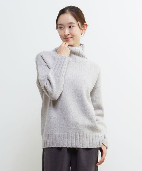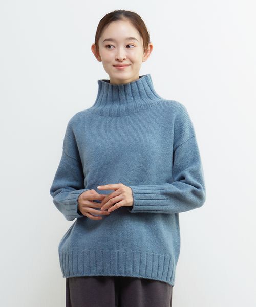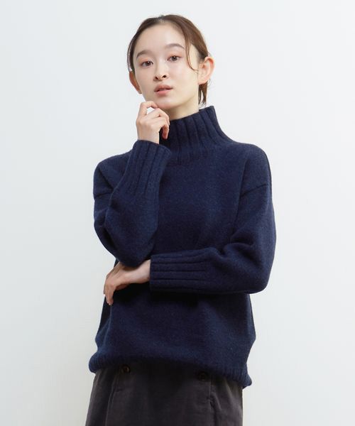 ラムズウールを使用したニット。ゆったりとしたサイズ感で、旬な雰囲気で着こなせます。袖と裾はリブ編みになっていて、シンプルなデザインのアクセントに。衿高の長さを低くし、折ったりせずにそのままで着やすい高さになっています。全色別注カラーになります。【ISLAND TIDES】イギリス発のニットブランド。英国ニットの特性を活かし、イギリスファッションの流行と伝統をミックスした物づくりを得意としています。イギリス製にこだわり、現代の多様なファッションにおいてもマッチするディテールをもったブランドです。※画像の商品はサンプルです。実際の商品と色味、仕様、加工、サイズ、素材等が若干異なる場合がございます。