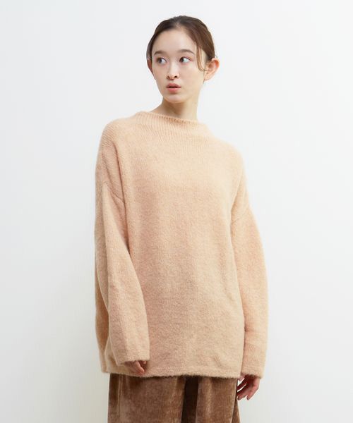 ふんわり柔らかなローゲージ編みのモヘア混ニットプルオーバー。ボトルネックのシンプルなデザインで軽くて暖かい使いやすい一枚です。ボトルネックデザインと全色ロジュモンドクレール別注カラーになります。