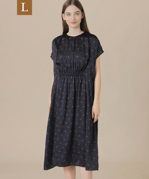 衿ぐりに寄せた分量感のあるギャザーがポイントの一枚でさまになるワンピースです。合わせる小物やスタイリング次第でさまざまな表情をお楽しみいただけ、デイリーからオケージョンシーンまで幅広く活躍するアイテムです。