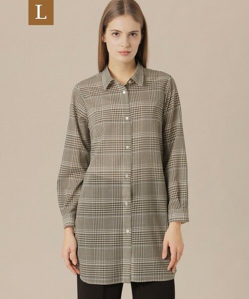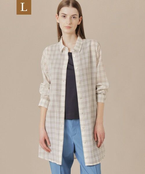 【ラージサイズアイテム】【ウォッシャブル】【着用推奨シーズン:春・夏・秋】<素材説明>細番手の糸を使用し繊細な透け感と毛羽立ちの少ないクリアーな表情に、ウール特有のドライなタッチが特徴のサマーウールです。家庭で洗える、イージーケアな素材です。<デザインポイント>清涼感のある素材を生かし、程よく身体から離れたシルエットのロング丈で一枚で様になり、初夏にも活躍するブラウスです。同素材のスカート(品番G7S13539)もご用意しております。