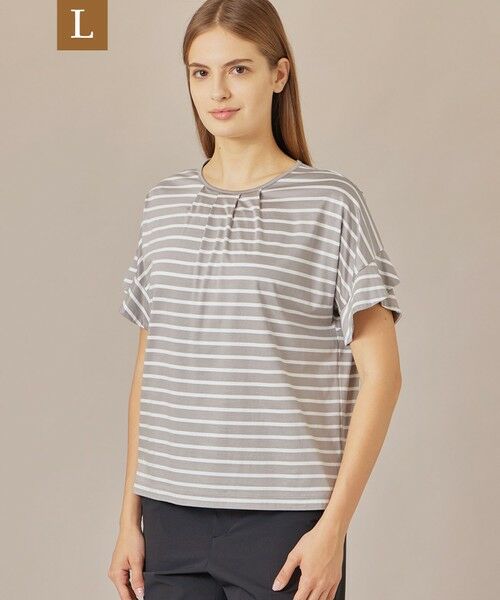 ラッフルスリーブ仕立てのカットソートップスです。エレガントなスタイリングに合わせやすいベーシックな配色です。日本製の涼しげな素材を、日本の縫製工場で繊細に仕立てています。