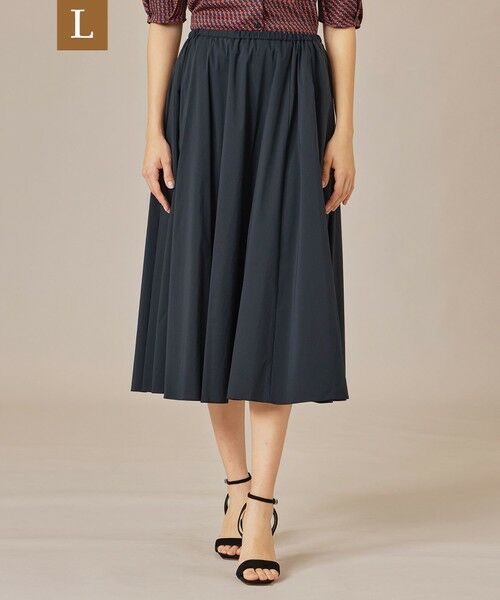 ギャザーをたっぷりとったシルエットで、歩いたときの華やかさが魅力のスカートです。同素材のブラウス(品番:G7M69582)とのセットアップコーディネートもおすすめです。ウエストは総ゴムで履きやすいアイテムです。裏地付きです。