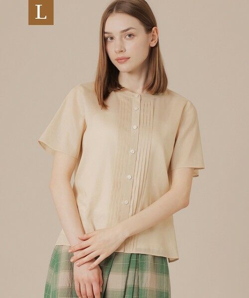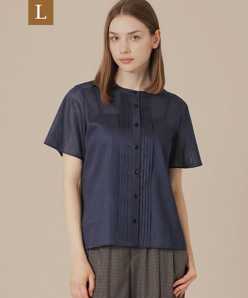フロントのタックがアクセントのシアーなブラウスです。程よく身体から離れたシルエットが清涼感があります。インナーにタンクトップ(品番:G7P06665)を合わせていただくのをお勧めします。