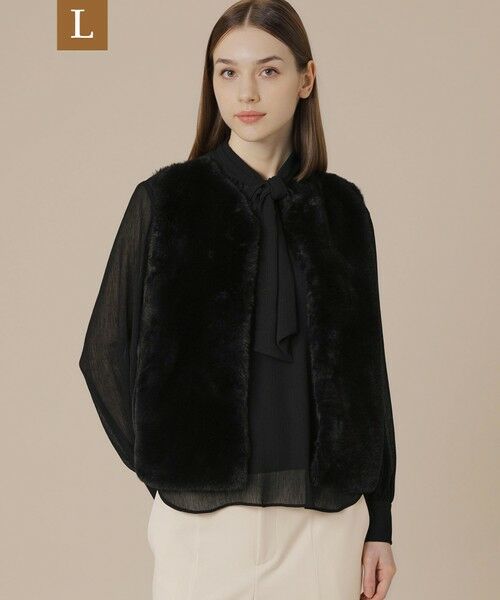 前身頃のエコファーに後ろ身頃はニットを組み合わせたジレです。ワンピースやトップスとパンツのスタイリングに合わせ、コートを着用する前の季節にコーディネートのアクセントに、寒くなってきた季節にはコートのインナーとしても活躍します。前身頃のみ裏地付きです。